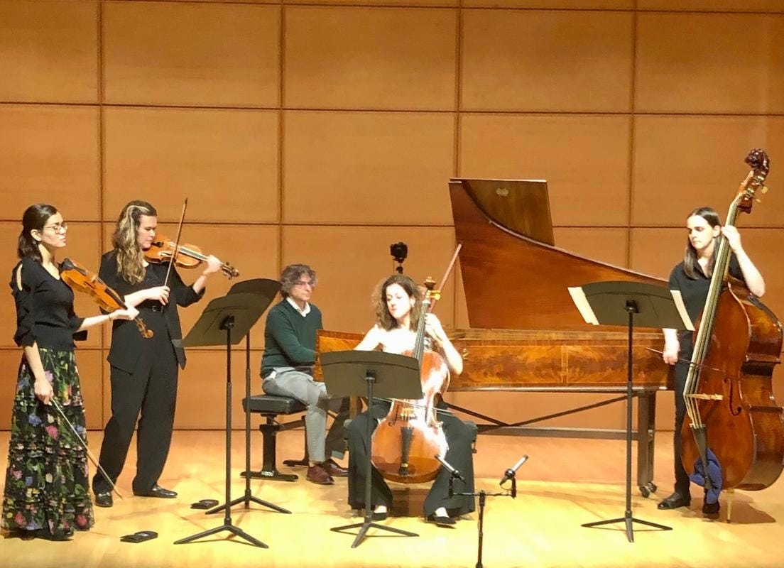 Today marked the culmination of many months of work. Elinor completed and performed her own three movement sonata, as well as several improvised variations and much other repertory. In true eighteenth-century fashion, the ink was still wet on the page - so to speak - at the premiere. She completed it only on the morning of the concert. She was still making amendments minutes before going on stage. There was no time to practice the difficult passagework and double-stops. Somehow, she managed to sightread the new parts. For a first composition, her sonata is an impressive achievement. It was composed using solfeggio, rather than the more usual partimento/bass/schema models currently in use. Its emphasis on melodic discourse is obvious. This method begins with a pattern of melodic solfeggio syllables, arranged into coherent phrases/units. The bass is added later, as a kind of supportive conversation partner. Solfeggisti in the eighteenth century, including castrati and string virtuosi, could compose melodies in this way without having to give much consideration to the bass. Farinelli, for instance, could compose wonderful arias, leaving it to his brother Riccardo Broschi to complete the mundane tasks of adding a bass and inner parts.