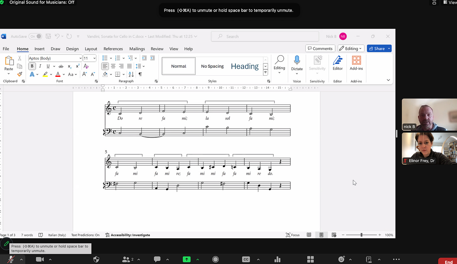 Elinor and I met in January 2024, when she joined my online class. This course finished soon after, so we decided to continue with private practice sessions. In the first ones we went through the basics and Cotumacci’s first solfeggi. But by lesson 5, it was clear that Elinor was not content merely to study the method. She wanted to apply it her performance. We began to work together on several projects: